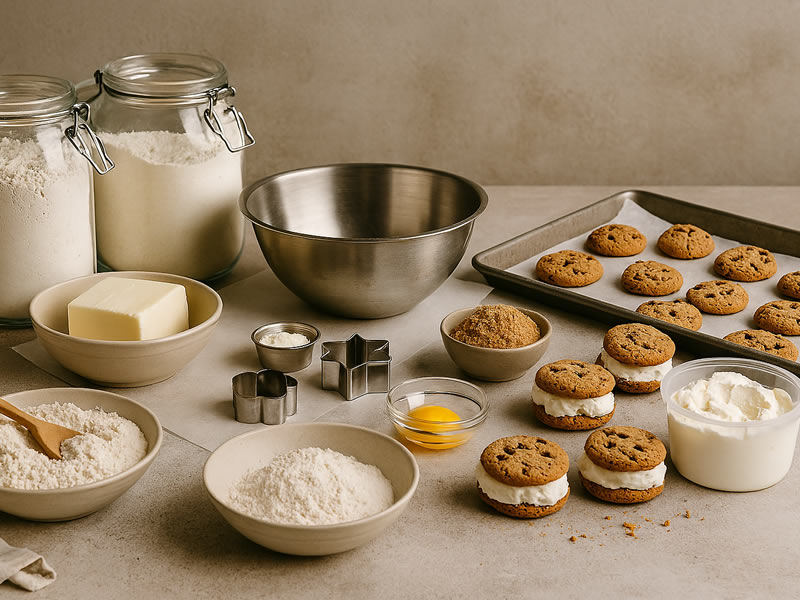 Galletas crujientes recién horneadas envuelven un centro cremoso y frío, creando un postre irresistible y lleno de encanto.